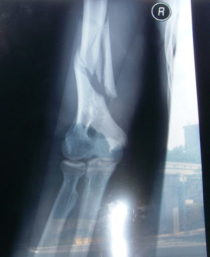 Broken arm of a Zomi refugee. Zo Taang fall down from the lorry he was driving and his Right arm was broken.